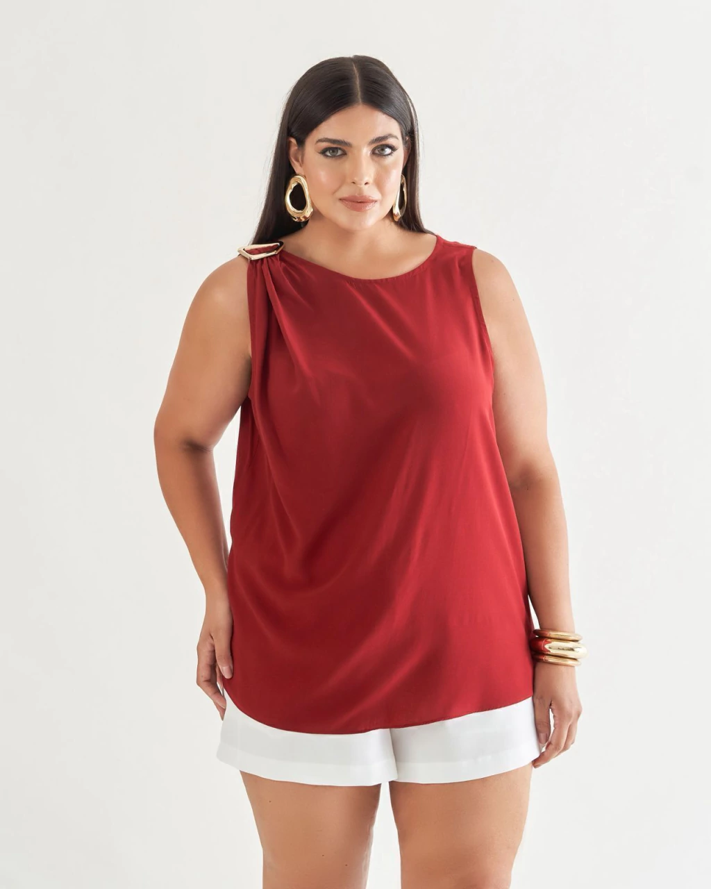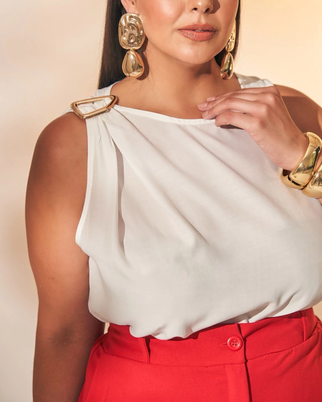 Diferencial: Argola metálica dourada no ombro, com acabamento moderno e sofisticado.